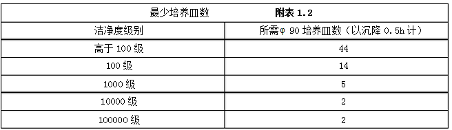 沉降菌測定時,培養(yǎng)皿應布置在有代表性的地點和氣流擾動極小的地點,培養(yǎng)皿數(shù)可與按附表1.1確定的采樣點數(shù)相同,但培養(yǎng)皿**少數(shù)量應滿足附表1.2的規(guī)定。 #p#分頁標題#e#