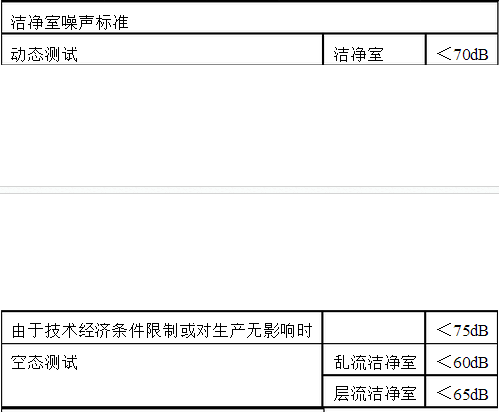 (6)非單向流潔凈室(區(qū))的噪聲級(jí)(空態(tài))不應(yīng)大于60dB(A),單向流和混合流潔凈室(區(qū))的噪聲級(jí)(空態(tài))不應(yīng)大于65dB(A)。