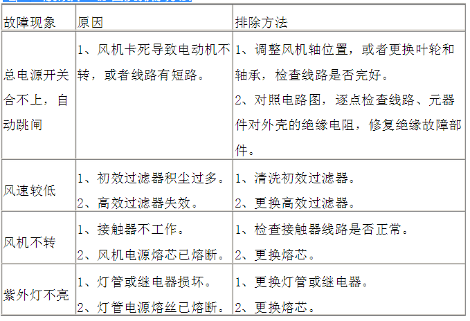 4、更換高效空氣過濾器時(shí),應(yīng)注意型號規(guī)格尺寸的正確(原生產(chǎn)廠家配置),按箭頭風(fēng)向裝置,并應(yīng)注意過濾器的周邊密封,**無滲漏現(xiàn)象發(fā)生。 七、一般故障、原因及排除方法