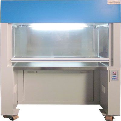 一種簡易便攜式超凈工作臺,其主體為可拆卸的操作隔離組合板,組合后可形成一個(gè)封閉的立方體空間。超凈工作臺外面的空氣(Basin air)由小型離心風(fēng)機(jī)壓入直管式靜壓箱,直管式靜壓箱內(nèi)的空氣過濾網(wǎng)對進(jìn)入的空氣進(jìn)行初次過濾后,通過連接部件進(jìn)入高效(指效能高的)空氣過濾器中進(jìn)行二次過濾,從空氣高效過濾器出風(fēng)面吹出的潔凈氣流具有一定的和均勻的斷面風(fēng)速,自上而下形成垂直式凈化氣流,可以排除工作區(qū)原來的空氣,將塵埃顆粒和生物顆粒帶走,從而形成無菌的高潔凈的工作環(huán)境。
